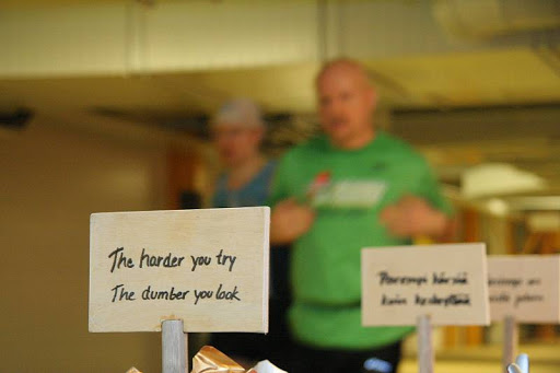 Mieleni on kuitenkin osin E24- juoksijoiden parissa. Heillä on taivallettavanaan 1,5 tuntia sumun ja tuskan läpi. Esko Anttila on ottanut tapahtumassa uusia hienoja kuvia, joista yksi alla. Kyltti seisoo jonkun juoksijan oman huoltopisteen pöydällä.